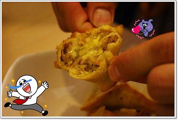 將熱騰騰的餃子燒一撥開來,濃濃的起司香撲鼻而來,吃起來口感像是酥脆的餃子,但多一點芥末味,一問之下,才知道原來那是老闆家的獨門調味粉的味道!!